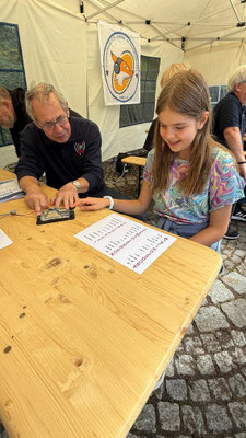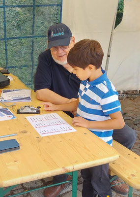 Das absolute Highlight war aber das beliebte Morsezertifikat. Wer seinen eigenen Namen (meistens) fehlerfrei morsen konnte, erhielt ein ansprechendes Zertifikat als Erinnerung. Neben interessierten Jugendlichen konnten wir auch einige Honoratioren aus der Politik (Namen sind beim vergrößern der Bilder zu lesen) an der Taste begrüßen.